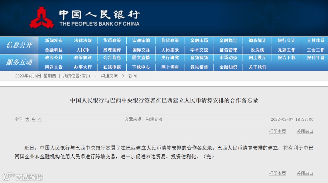 先说巴西,严格说这不能算是3月份的新闻。2月7日,中国人民银行宣布与巴西中央银行签署在巴西建立人民币清算安排的合作备忘录。