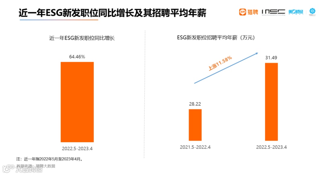 猎聘《ESG 人才吸引力洞察报告 2023 》大数据显示,近一年 ESG 新发职位同比增长超 60%,招聘平均年薪超 31 万!ESG 热潮兴起,企业产生了巨大的 ESG 人才需求!