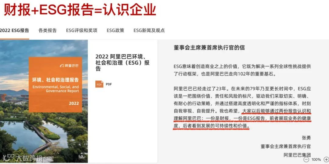 按照阿里巴巴前董事会主席张勇的话说:大家以后认识和了解阿里巴巴,只需要两份报告:一份是财报,一份是ESG报告!