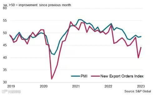 (韩国制造业PMI以及出口订单量变化,来源:标准普尔全球市场情报)