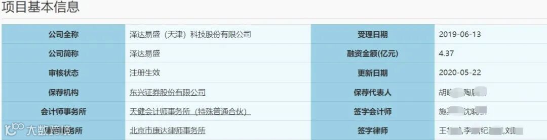 胡**2019年带团队入职东兴,泽达易盛是胡**从西南证券带到东兴的项目