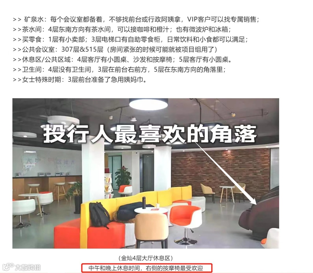 对了,在荣大快印四楼的一个公共休息区,放置着几张按摩椅可以提供给客户休息使用。荣大在自己官微中也提到,几张按摩椅是“投行人员最喜欢的角落”: