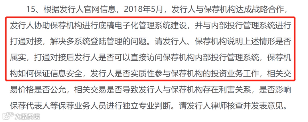 首先,是公司的保密性制约了它的科技底色不会给投行员工带来多少便利,因为没有投行愿意把自己的底稿公开在一个供应商的软件系统里,这也印证了证监会对荣大的问询,即是否能保证客户的商业机密和系统安全: