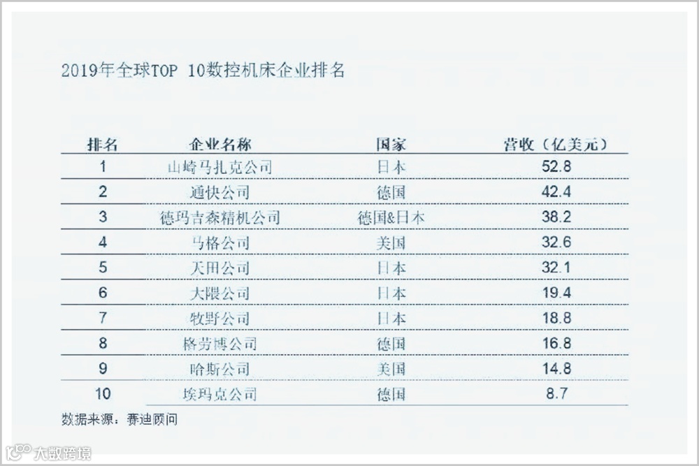 在最新的全球机床企业排行榜上,山崎马扎克(日)、通快(德)、德玛吉森精机(德日合资)等老牌企业重新回到前列。而在全球TOP 10中,日、德各占据4席、美国占据2席,中国无一上榜。