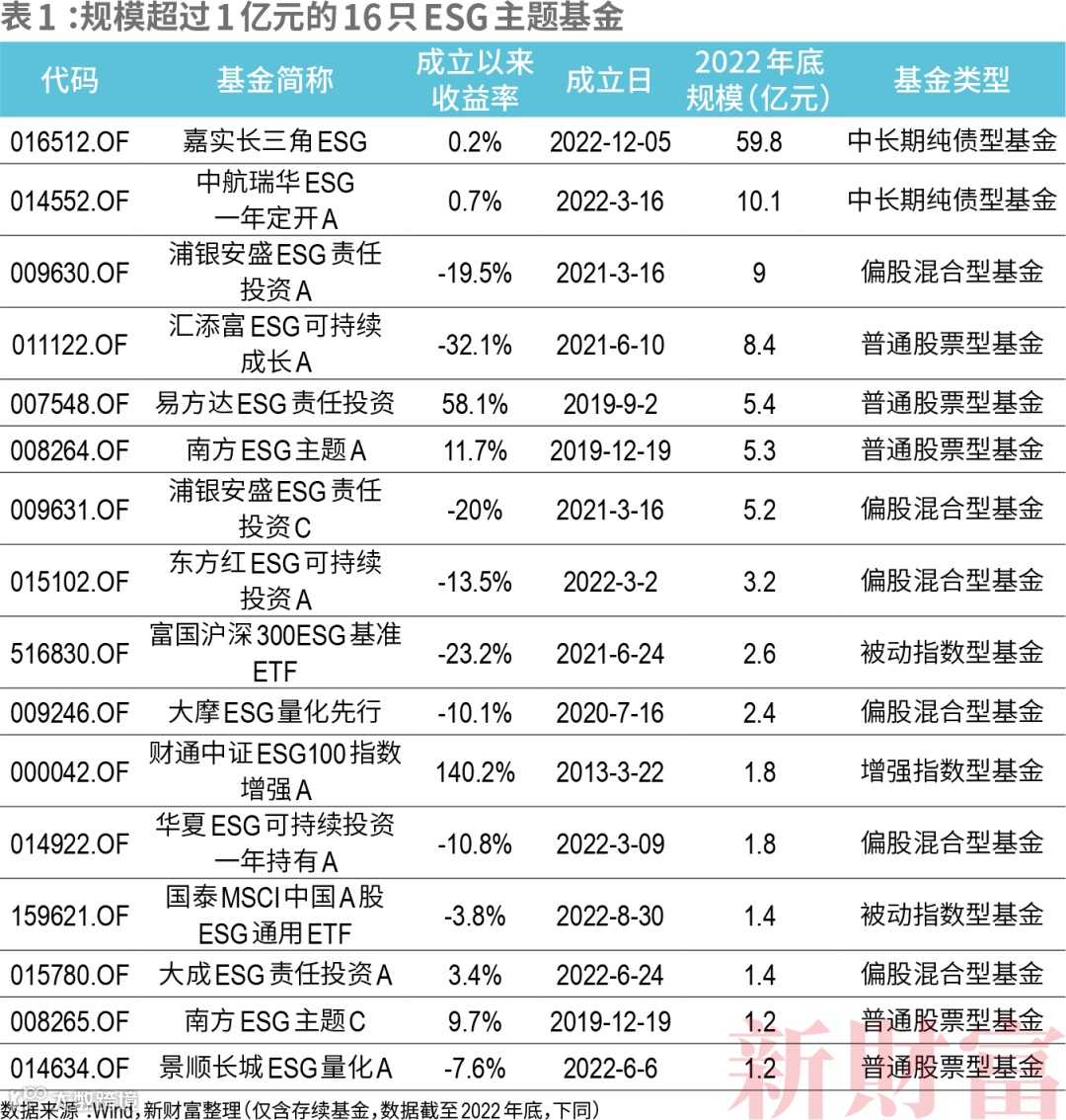 2013年,首只ESG主题公募基金——财通中证ESG100指数增强A成立,截至2022年底,其规模为1.76亿元,成立以来回报率为140.18%。