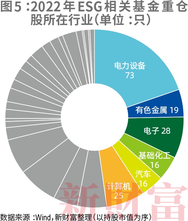 电力设备是ESG、E、S基金重点关注的行业;E基金还主要投资于有色金属、汽车、公用事业;S基金主要投资于电子、商贸零售、计算机等行业;G基金主要投资于食品饮料、医药生物等行业。