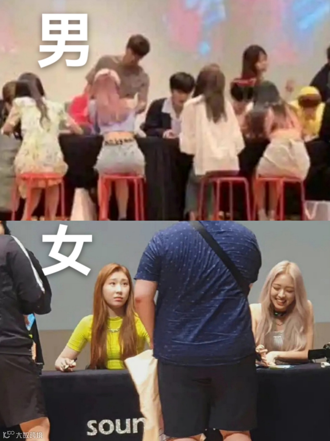 近期在韩网上引起热议的男女爱豆签售会现场粉丝对比图,能说明一些问题。