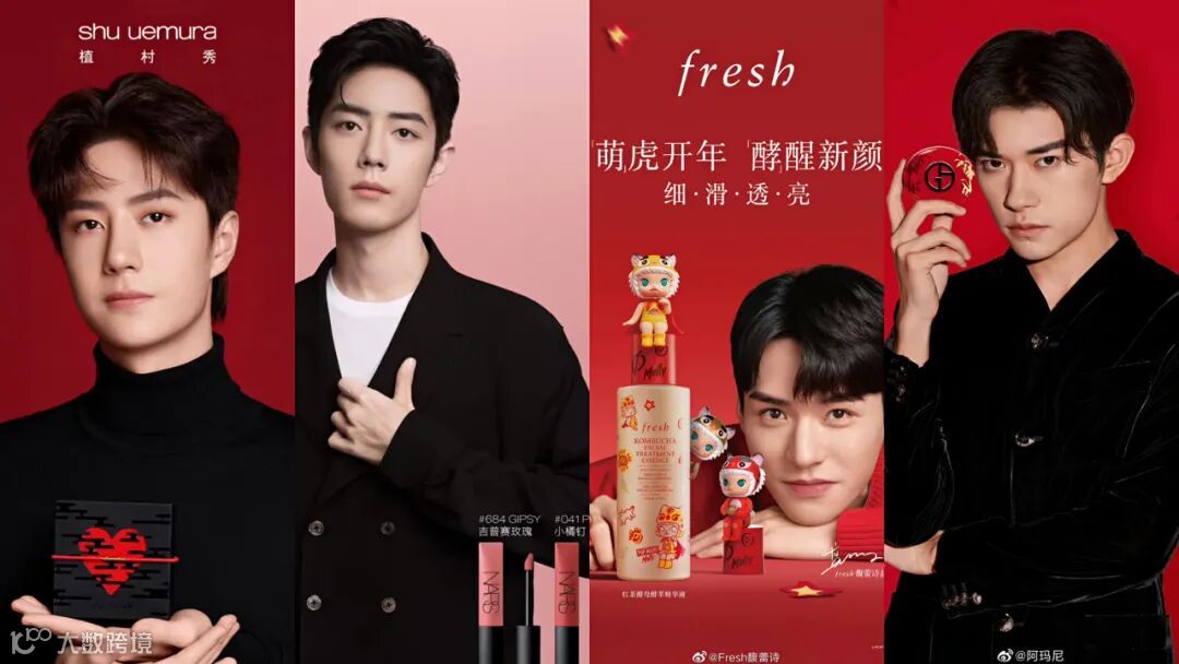 现如今的内娱,女性为消费主力军的彩妆护肤产品请男明星代言已经成了定式。