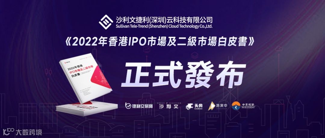 2023年1月10日,沙利文捷利(深圳)云科技有限公司联合捷利交易宝金融科技有限公司、弗若斯特沙利文有限公司、头豹国际有限公司、路演中网络科技有限公司、今日投资数据科技有限公司共同出品的《2022年香港IPO市场及二级市场白皮书》,正式发布!