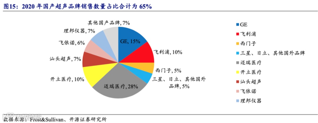 中国医疗设备市场广阔,但国产品牌起步较晚,市场竞争格局呈现由外资品牌垄断的局面。其中,尽管超声设备在低端市场已基本实现国产化,但在中高端市场被进口品牌垄断。根据开源证券数据,2019年一季度,国产品牌在国内超声高、中、低端市场的占比分别为8.1%、29.17%、75.1%。
