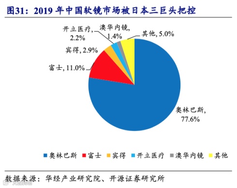 外资品牌垄断中国软镜与超声市场 图/开源证券