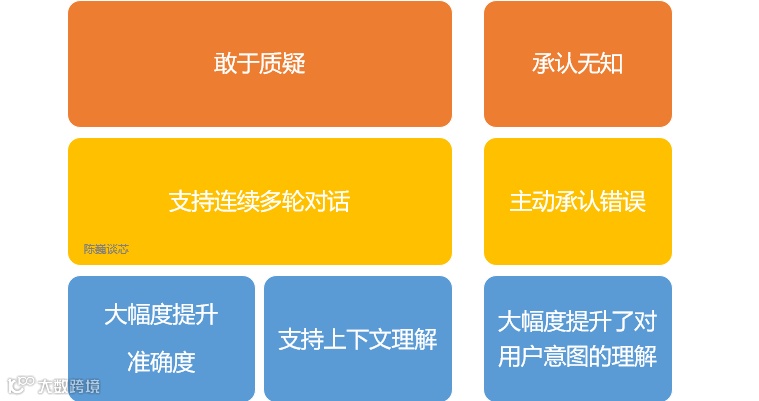 与大家在生活中用到的各类智能音箱和“人工智障“不同,ChatGPT在对话过程中会记忆先前使用者的对话讯息,即上下文理解,以回答某些假设性的问题。ChatGPT可实现连续对话,极大的提升了对话交互模式下的用户体验。