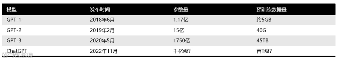 ChatGPT之前有几个知名的兄弟,包括GPT-1、GPT-2和GPT-3。这几个兄弟一个比一个个头大,ChatGPT与GPT-3更为相近。