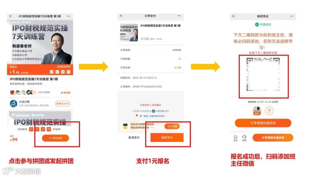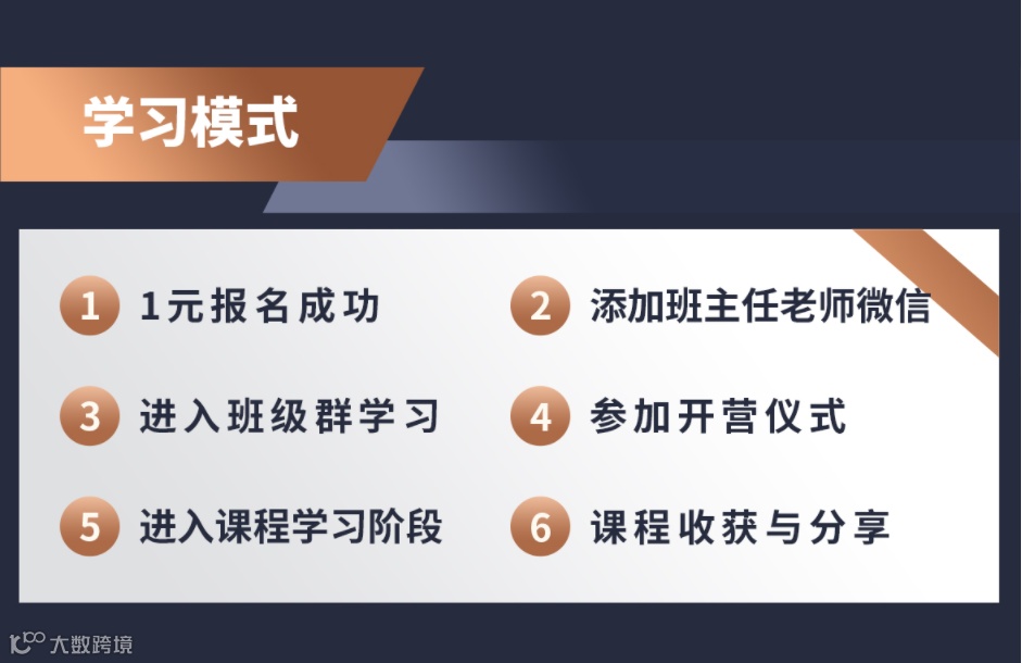 支付1元报名 → 添加专属班主任微信 → 等待开班拉群 → 进入班级群学习 → 参加开营仪式 → 正式进入课程学习阶段。