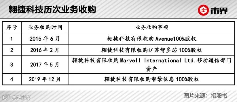 成立之后,翱捷科技在2015~2019年间完成4次业务收购,迅速收集多项基带芯片等关键技术。在一级市场中,翱捷科技也颇受欢迎,分别在2017年、2020年获得阿里网络、小米长江产投加盟。