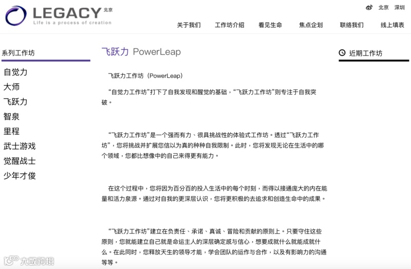 毕竟,五天9800元的课程,也算不上过分昂贵。此类课程设置也迎合了企业管理者在“领导能力”和“抗压能力训练”方面的需求。比如,LEGACY“飞跃力”项目简要介绍里提到的领导才能、团队的运作与合作,以及有影响力的沟通等。