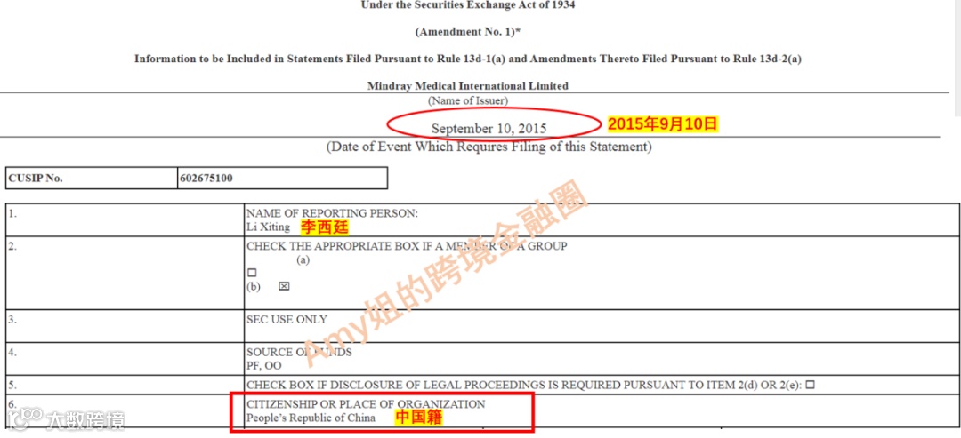 事实上李西廷在迈瑞在纽交所上市之时(2006年),以及此后很长一段时间(至少在2015年9月10日之前)也都是中国籍。