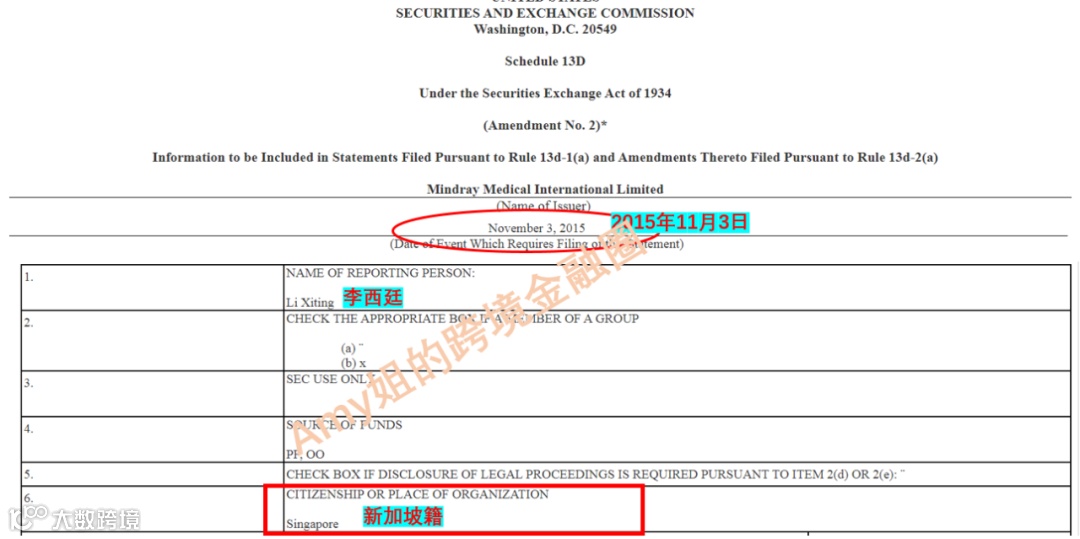 ▲图:2015年11月3日提交给美国SEC的文件显示李是新加坡籍
