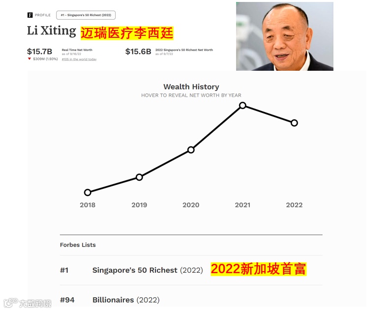 恭祝迈瑞医疗李西廷以156亿美元(折合约1000亿人民币)身家再提新加坡首富。