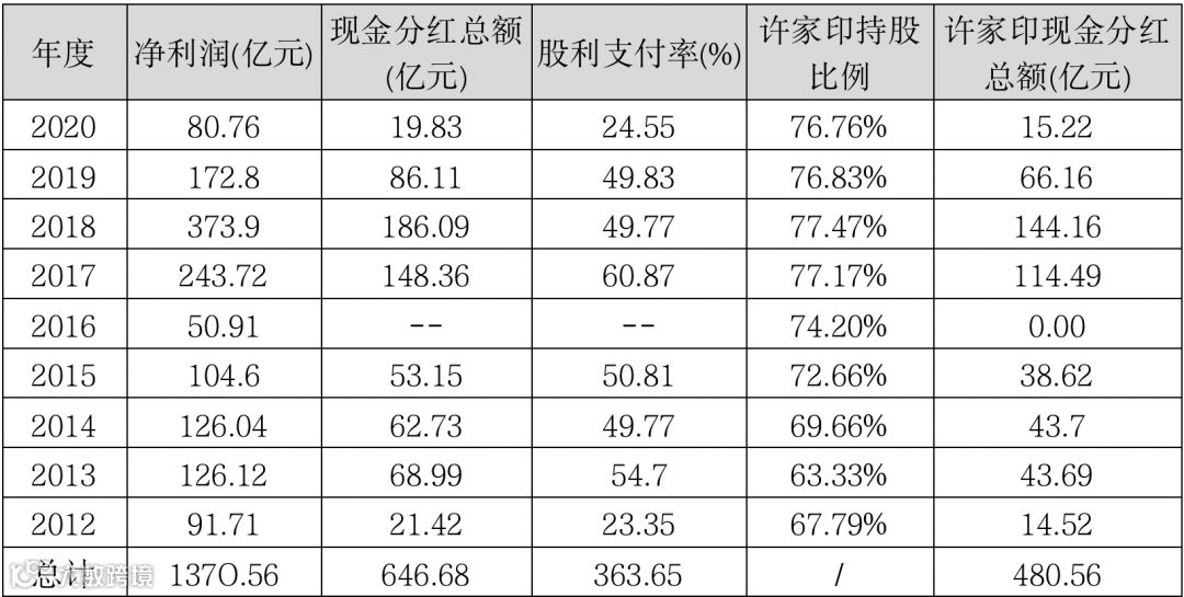 据不完全统计,近十年里,恒大集团净利润为 1370.56亿,分红共计1142亿。由此带来的结果是,作为最大的股东,许家印夫妇可以将这些只具备“理论分红合法性”的利润,变成自己的实际收益。
