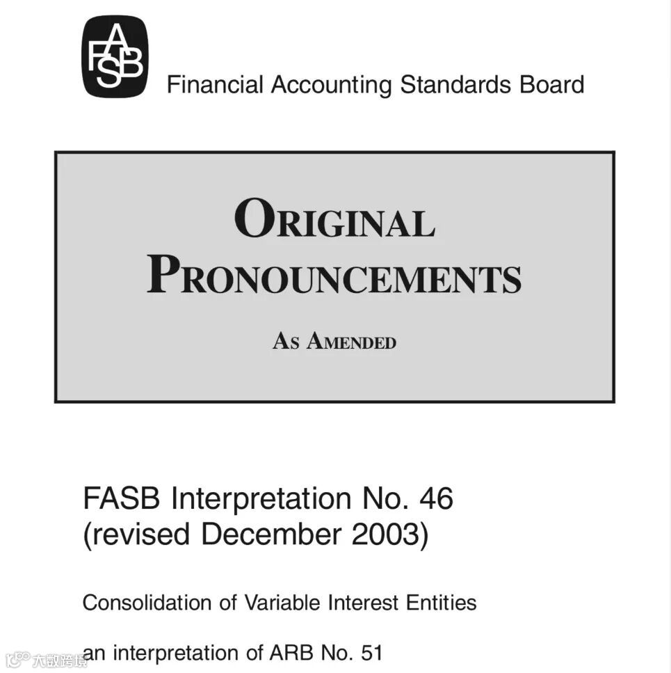 早期美国的会计准则,对于财务并表,系基于传统的"股权控制"。2001年10月安然事件爆发,安然利用与“特殊目的实体”(SPE, Special Purpose Entity)的关联交易,大量转移亏损,粉饰合并会计报表,SPE被视为逃避税收与会计监管的工具。2003年1月17日“美国财务会计标准委员会”(FASB,Financial Accounting Standards Board)发布FIN 46号解释函《可变利益实体的合并》(Consolidation of Variable Interest Entities),陈明如果某一实体获得了SPE的主要经济利益,同时又承担其主要经济风险,那么它就存在对该SPE的“实质控制”,须要并表。