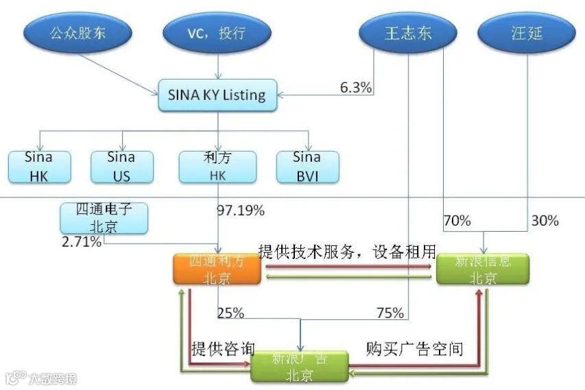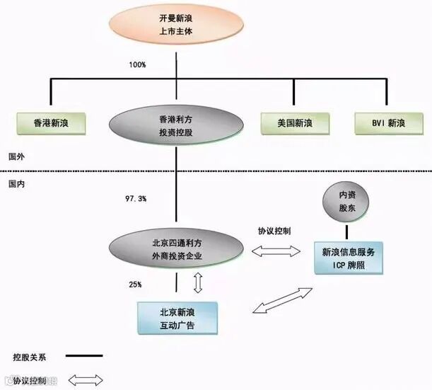 在这样的架构下,新浪既能拿到海外VC/PE的美元投资,也可以从事中国法律禁止外资介入的互联网信息服务等领域,并且其海外上市也不需要通过中国监管单位的审批。