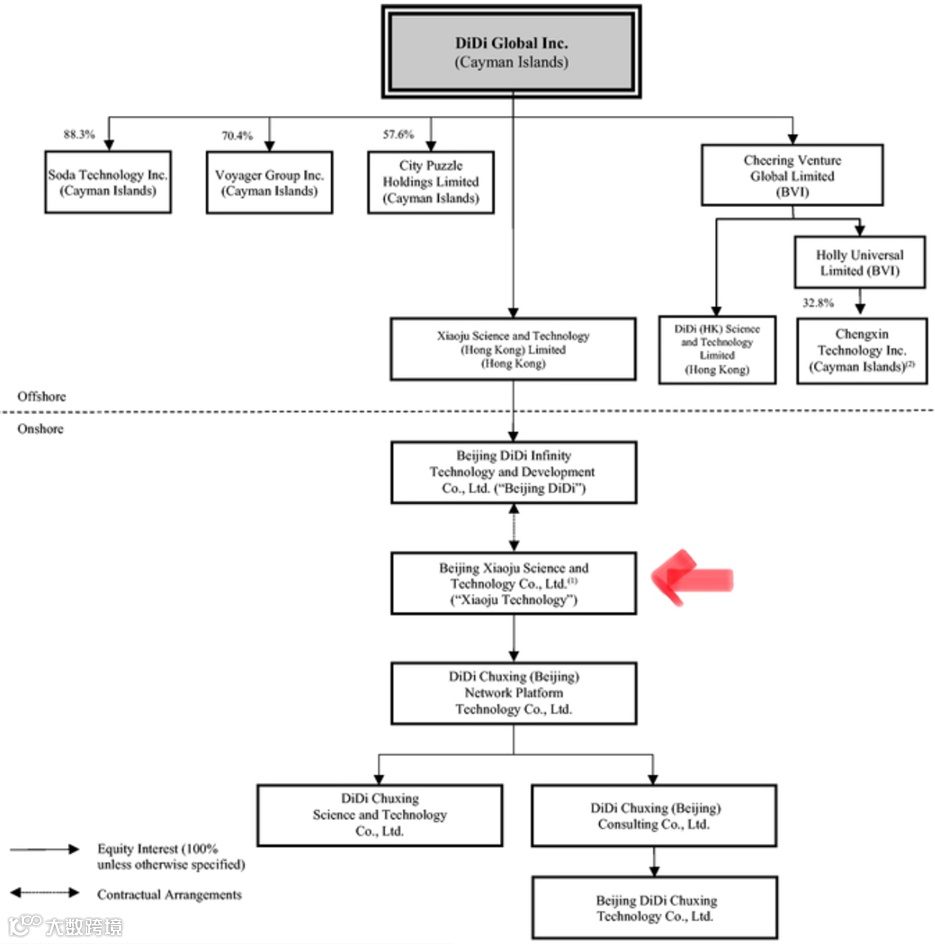 -滴滴于2021年6月30日在纽交所上市,是最近在纽约上市的中概股,也是红筹及VIE架构进入“强监管”时代的分水岭。上市后瞬即爆发数据安全、反垄断及上市审查等事件,希望不至于被迫退市,也期待不是中概股赴美上市的最后一家。红色箭头所指的“小桔科技”(Beijing Xiaoju Science and Technology Co., Ltd.) ,就是VIE公司。