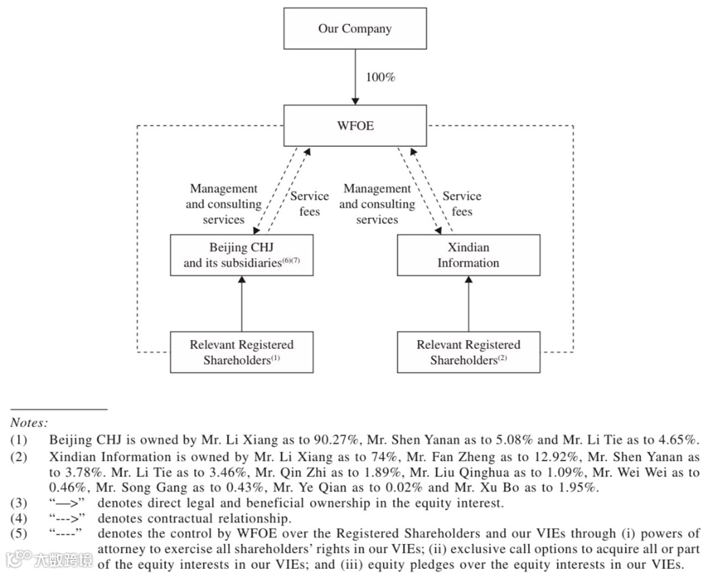 -理想汽车即将于8月12日在香港“双重上市”(不是“第二上市”,因在纽约上市还“不满两个会计年度”)。两家虚线下面的公司“车和家”(Beijing CHJ)及“心电信息”(Xindian Information)就是VIE公司。