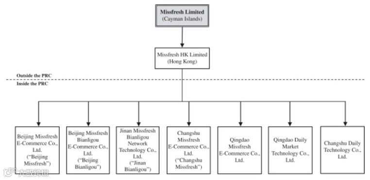 最新案例,每日优鲜原有两家VIE公司(上表左边的两家公司,北京每日优鲜电子商务有限公司及北京每日优鲜便利购电子商务有限公司),因其业务已不再受限于外资投资条例,因此在其6月25日纳斯达克上市前的招股书,披露已撤销其“控制协议”,并改制成每日优鲜香港的WFOE。招股书的说明文字:“In December 2018, we terminated the contractual arrangements with Beijing Missfresh and its shareholders as the businesses operated by Beijing Missfresh were no longer prohibited or restricted for foreign ownership under PRC laws and regulations。”