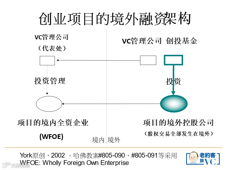 “两头在外”的投融资模式,有其存在的时代意义。“外资创投的“两头在外”模式,在中国的私募股权投资及证劵市场还不发达的年代里,把中国企业的投资及上市退出,“外包”给了国外的VC同行及华尔街,这是具有中国特色的产业发展道路。” (York的观点,“中国创投20年”一书的序文, 2011)