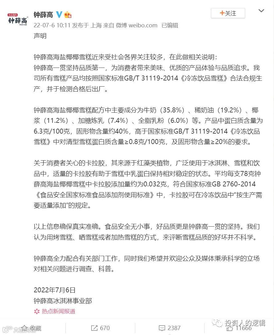 消费、投资、外贸,拉动经济的三驾马车,大消费尤其是食品类快消品一直是消费投资团队的最爱,现金流充裕,品牌打造快,耳熟能详后品牌忠诚度高,供应链在国内不存在断货销售的问题。消费投资也应该反思了,食品安全无小事,为什么添加剂给人体伤害的问题屡见不鲜,层出不穷,总是重视不起来,解决不了问题呢?近期也传来高瓴资本裁员销售投资团队的消息,《凤凰财经》报道:对于以下传闻,高瓴资本均予以否认,并对外回复称,“曹伟一直都是高瓴合伙人,合伙人黄立明的负责领域也没有变化,完全不存在重心转向美国一说。”