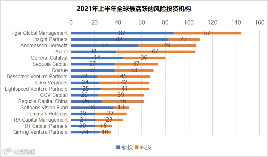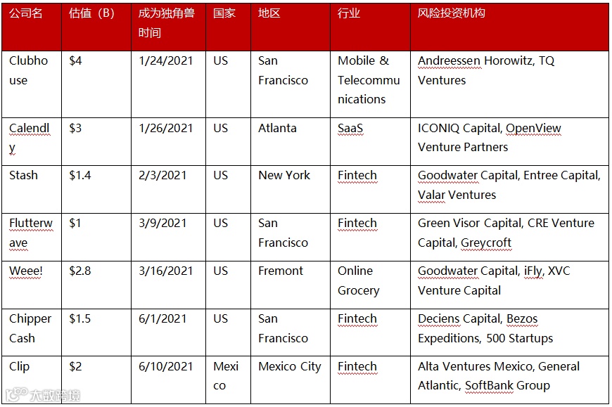 与2020年全年相比,今年上半年有更多的风险投资支持的公司上市,总市值超过 100 亿美元。而大型IPO的数量也创下记录,2020年总计有13家风险投资支持的公司IPO超过100亿美元,而在过去9年内,超过100亿美元的IPO总数为16家。但今年仅上个季度,就有8家规模超过100亿美元的IPO。