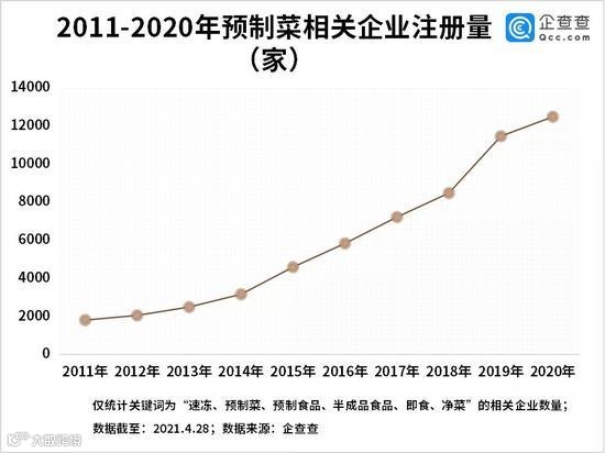 企查查数据显示,从2011年到2020年数据来看,预制菜相关企业注册量一直在不断上升。