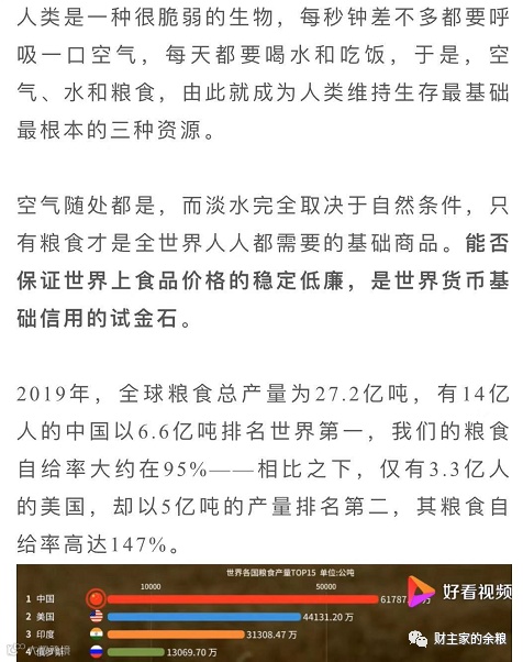 文中提到,因为美国一直是全球最大的粮食出口国,只要美国粮食丰产,就可以压低全球的粮食价格,使之始终处于低位。