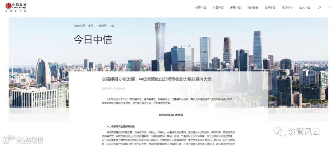 正如近日,中国中信集团于官网发布《实招硬招 护航发展:推出29项举措助力稳住经济大盘》,提到:将借助金融子公司全牌照优势,有效化解国内不良风险。