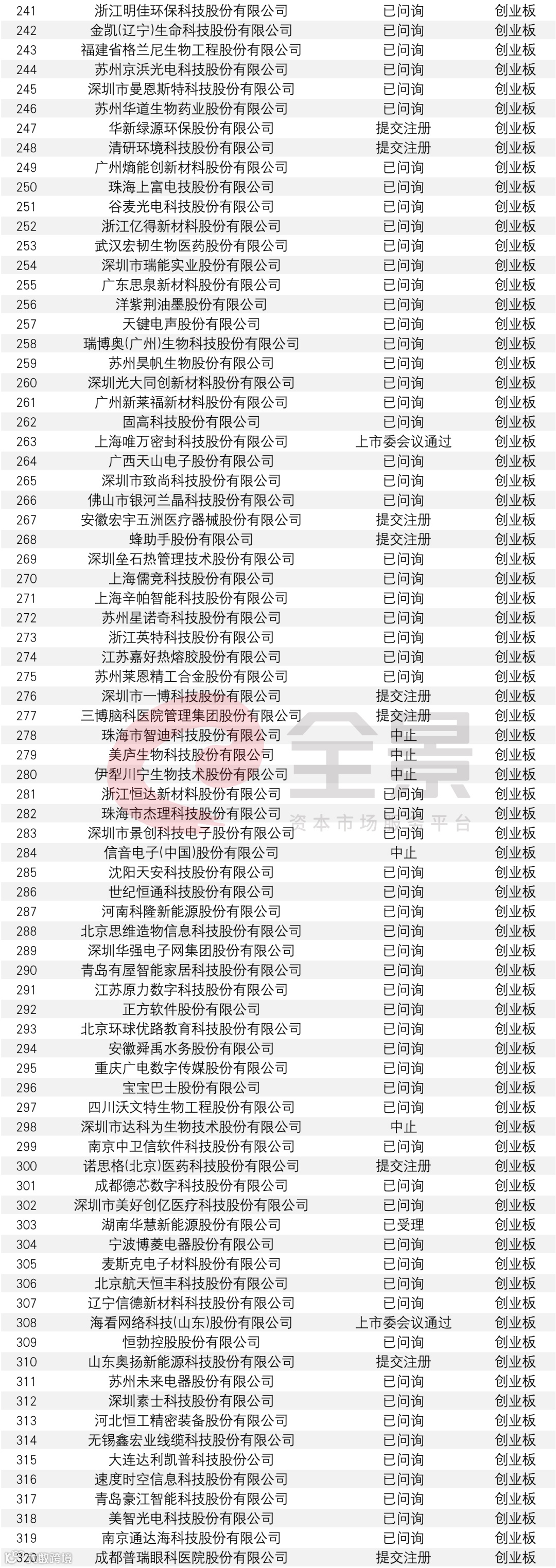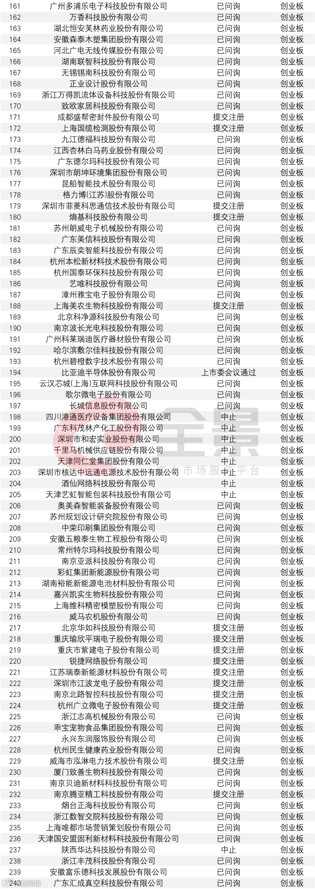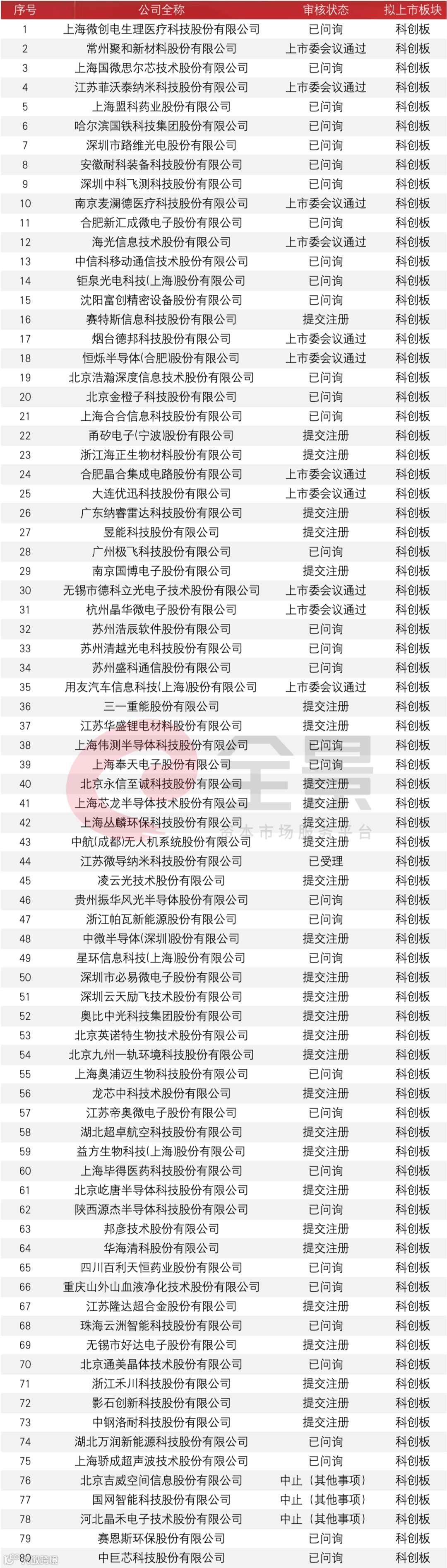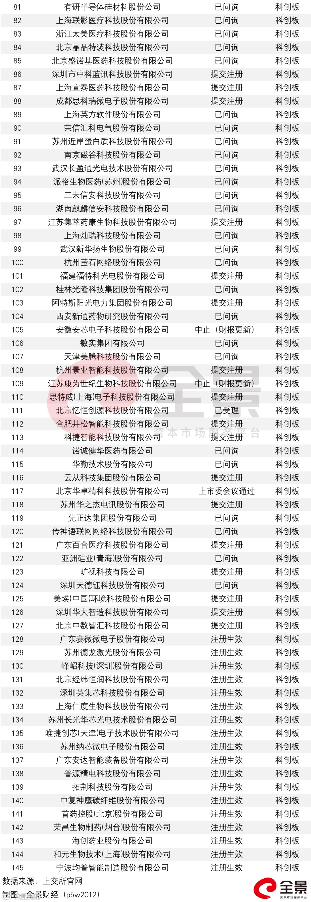 据上交所和深交所网站公开数据显示,截止目前,排在第一位的是已问询303家,占比60.36%;其次是提交注册116家,占比23.11%。