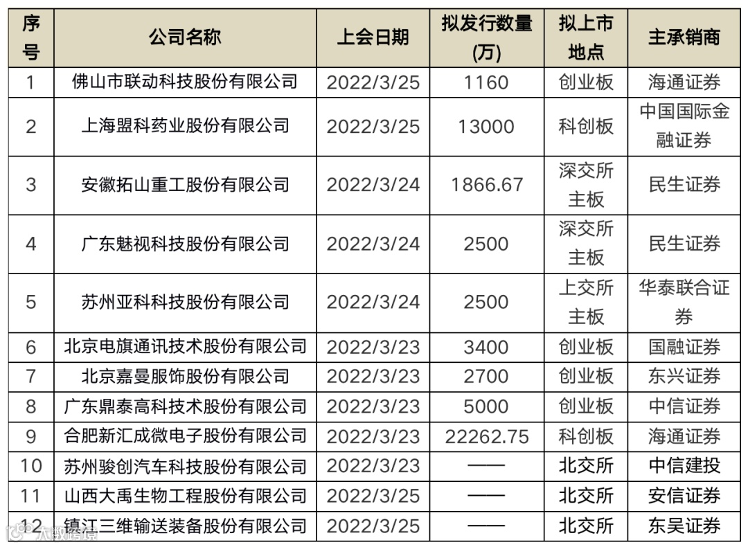 下周(3月19日-3月25日),有12家企业上会接受IPO审核。