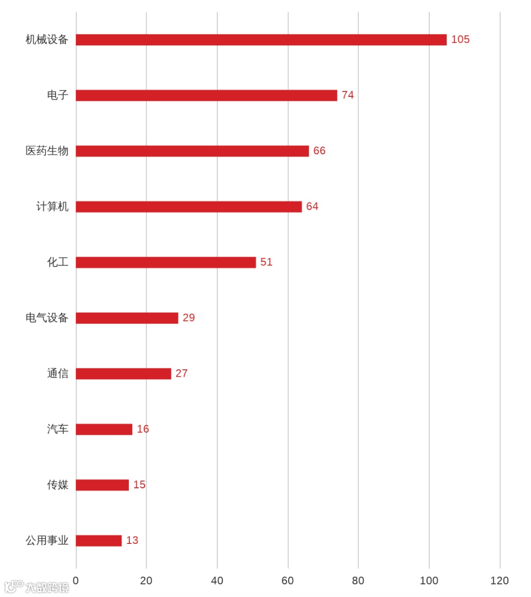 据上交所和深交所网站公开数据显示,已经信息披露的526家企业涉及26个行业。其中,排在第一位的是机械设备,共计105家企业,电子排在第二位,共计74家,第三位的是医药生物,共计66家。