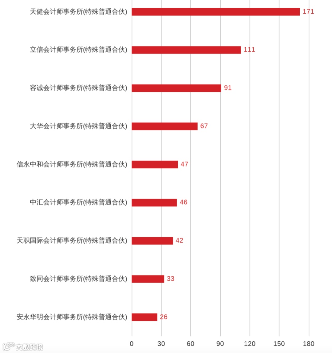 会计事务所方面,天健会计师事务所(特殊普通合伙)服务企业数量最多,多达171家;立信会计师事务所(特殊普通合伙)紧随其后,111家。