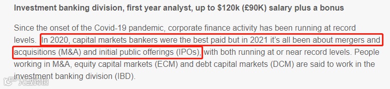 据efc的统计,2021年全球M&A和IPO都达到了创纪录的规模。M&A忙碌程度翻倍,间接拉高了IBD分析师的薪资水平,美国的分析师平均年薪可以达到14.1万美元。