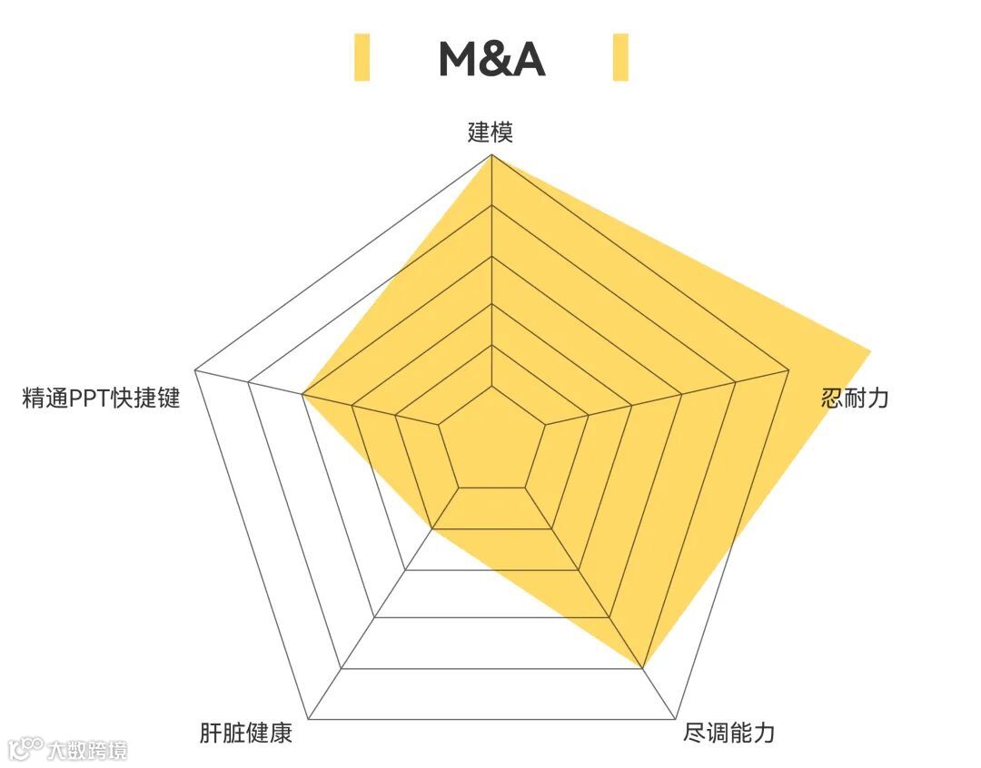 用雷达图来展现员工的技能的话,那M&A组员们应该都是这样的↓