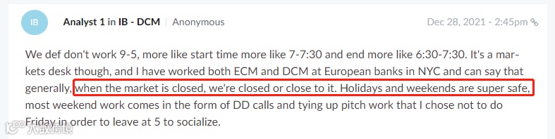 如果说股票市场多少有些不确定性和高风险,那么债券市场的交易都是比较稳定而且可以预测的,DCM的工作流程更稳定,下班时间更美好。