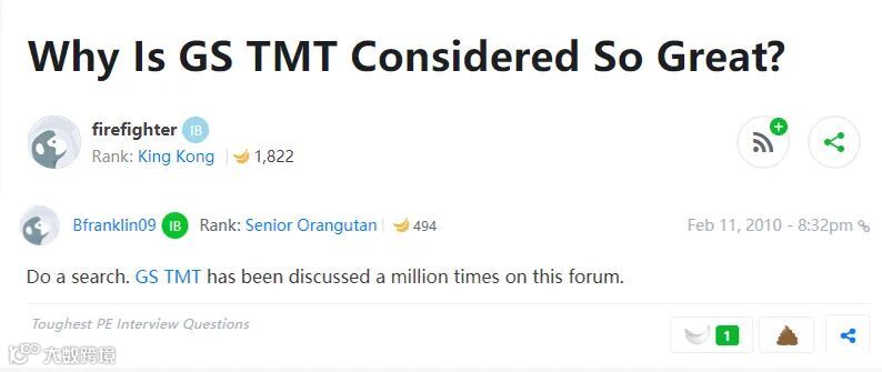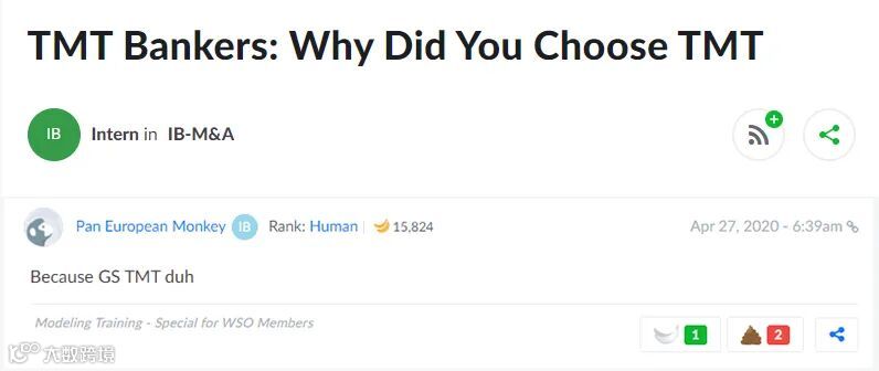 这里不得不提一下高盛TMT组,在WSO上的热度居高不下,如果有人问起banker为什么选择TMT,GS TMT就是最好的答案——十年前它就被认为是投行最好的小组了。