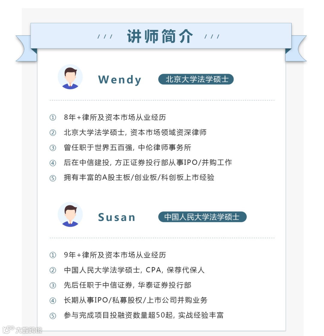 2.金融人。在证券公司投行/PEVC/资管/证监系统从业的金融人, 通过本课程你将系统全面的了解国内IPO业务的法律实操, 提升自己资本市场的业务竞争力