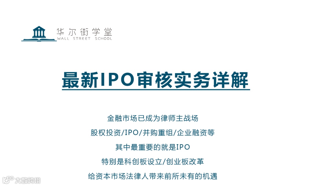为此我们邀请了资深人士为大家开发《最新IPO审核实务详解》精品课, 帮助学员建立实务指南, 提高金融人的职业发展与能力提升。