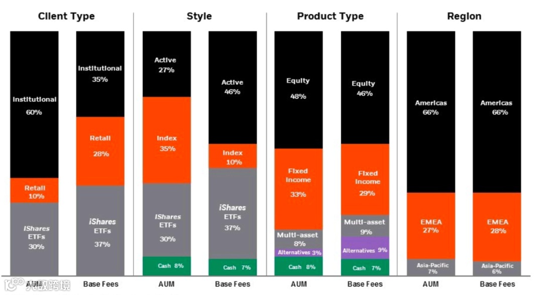 贝莱德客户类型、风格、产品类型及地区分布(截图来源:贝莱德财报)