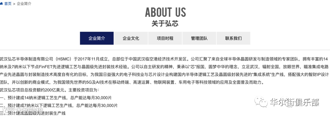 其官网信息显示,武汉弘芯成立于2017年11月,总部位于武汉临空港经济技术开发区,主攻逻辑芯片、系统集成。