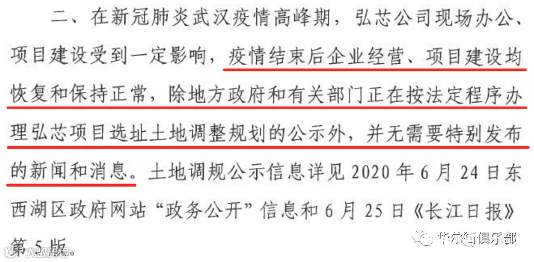 不过,武汉弘芯最新声明中说,上述状况「是受到疫情影响」,目前「企业经营、项目建设均回复和保持正常」。