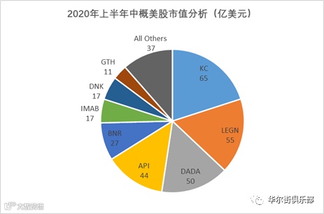 截止到6月30日,26家公司的市值合计达到323亿美元, 其中市值超过40亿美元的有4家, 分别是金山云, 传奇生物,达达集团,和声网。市值在10亿美元到40亿美元的也有4家, 分别是燃石医学,天境生物(NASDAQ: IMAB),蛋壳公寓(NYSE: DNK)和泛生子(NASDAQ: GTH) 。其余18家公司的合计市值约为37亿美元。