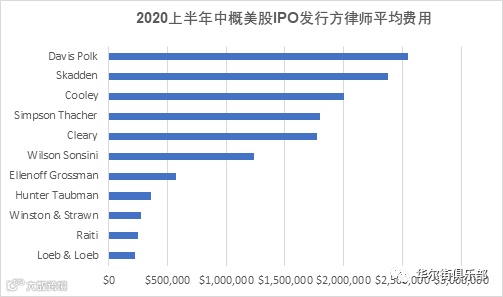 2020年上半年IPO收费最高的律所为UCloudLinkGroup (NASDAQ: UCL) IPO的律所Skadden,收费达347万美元。下图是律所收费的平均值: